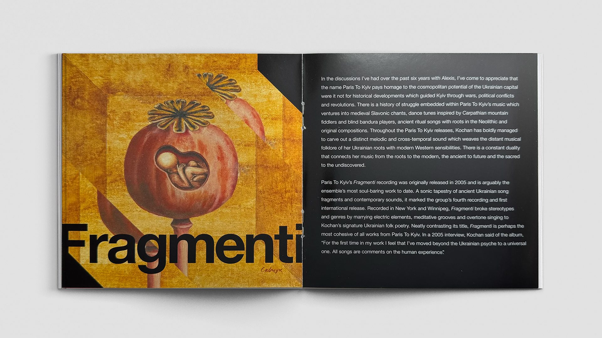 By 2005, the Paris To Kyiv project had entered a new phase. Years of touring had solidified the group’s reputation, but also brought a sense that something needed to change. Singer Alexis Kochan wanted to push the work further—sonically, emotionally, and culturally. Rather than refine what had come before, she aimed to chart new territory. Fragmenti would become the result. It was Paris To Kyiv’s most stripped-back and soul-baring recording to date—and arguably its most conceptually ambitious.
