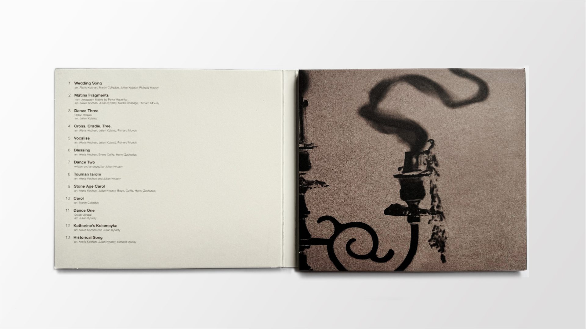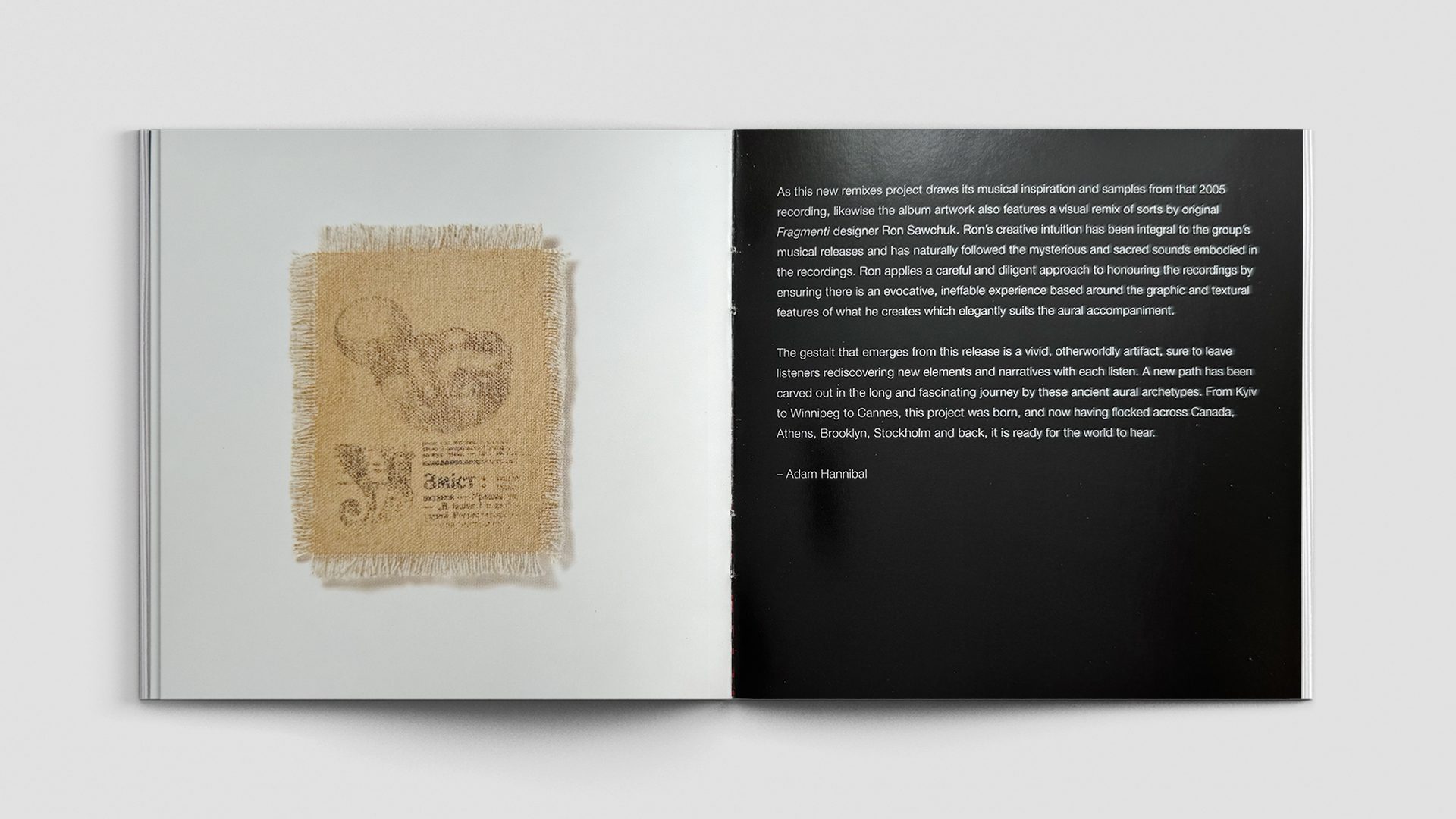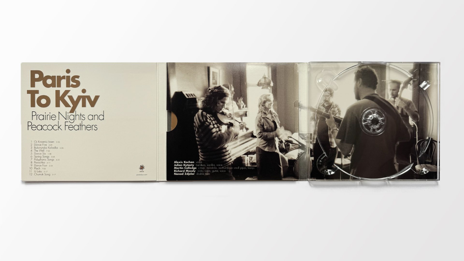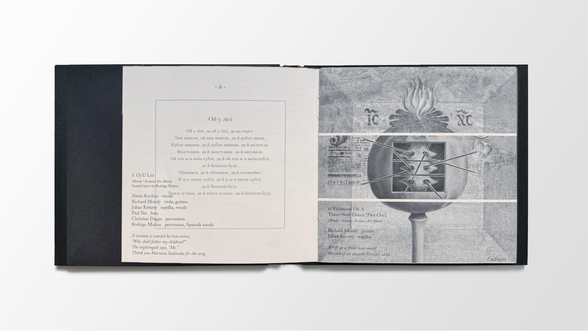 No plastic was used. The CD rests in a custom paper sleeve, held friction-tight. The 12-page booklet pairs Ukrainian lyrics with spare English “essences” rather than direct translations. These fragments mirror the musical approach: poetic, partial, open to interpretation.