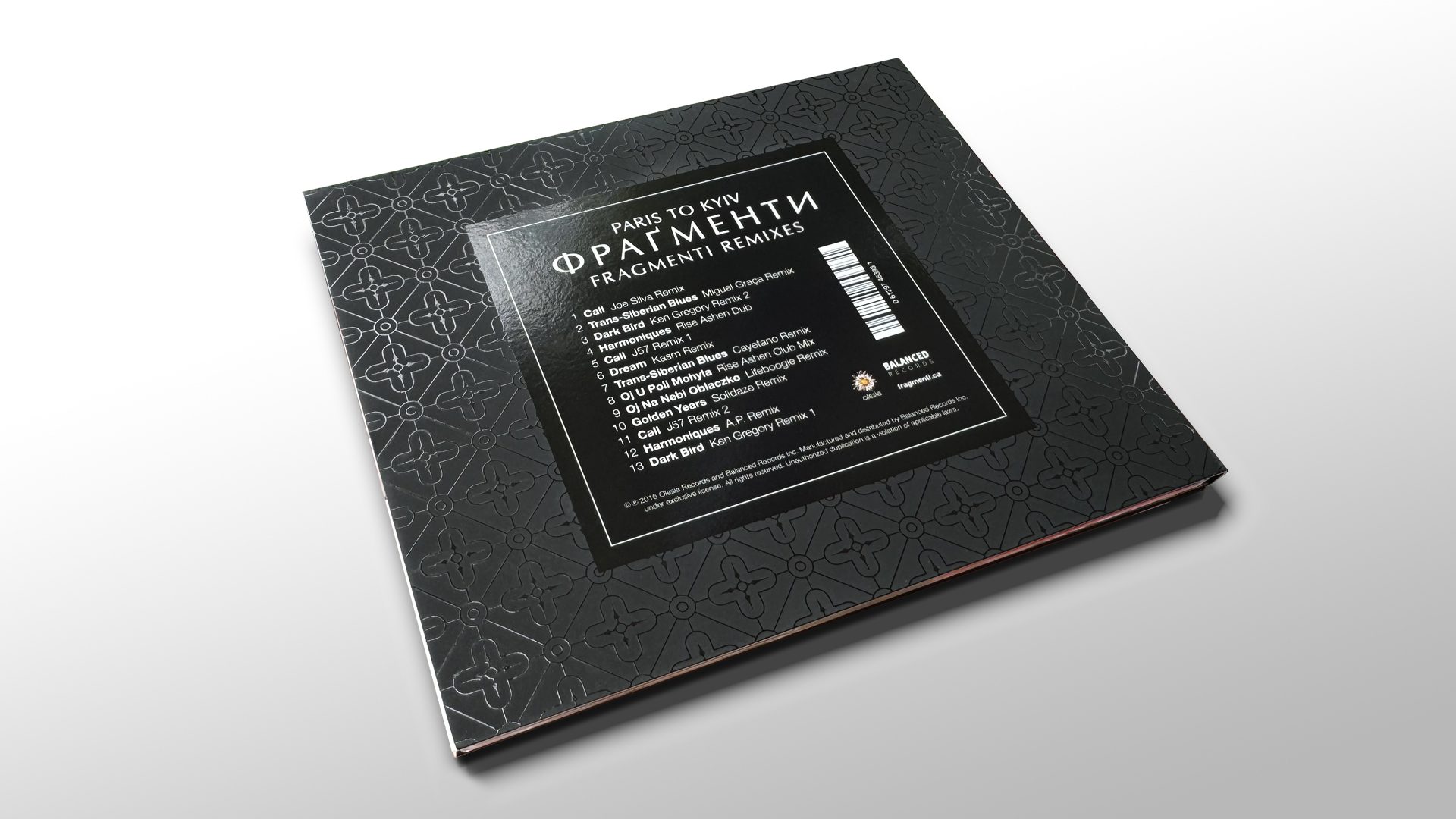 The black exterior opened to reveal a white gatefold interior—a subtle inversion of Fragmenti’s format. Photographs taken during the original Fragmenti recording sessions now appeared for the first time: composed, documentary-style portraits placed within a collage of Cyrillic script and sharp geometries. The visual language carried forward the formal elements of Fragmenti, but reinterpreted them through a modernist lens—stripped down, reframed, yet still rooted in memory. Fragments remixed.