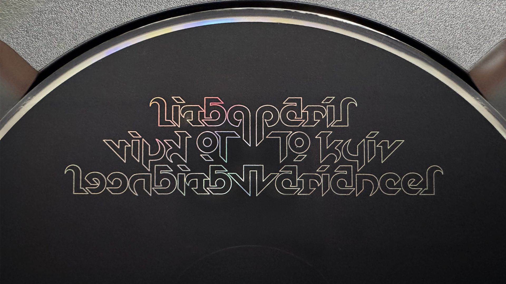 Typography throughout the package is restrained and minimal, offset by the custom-designed disc artwork. The mirrored symbolism continues in the typography itself. The title—Paris To Kyiv Variances—is rendered in a fully custom, stylized, geometric typeform that mirrors itself vertically: the right side reads clearly, while the left side reflects it in reverse. The design is abstract and architectural, with a structure that feels almost ritualistic. It’s less a logo than a symbolic artifact—another visual expression of balance, transformation, and dual identity.