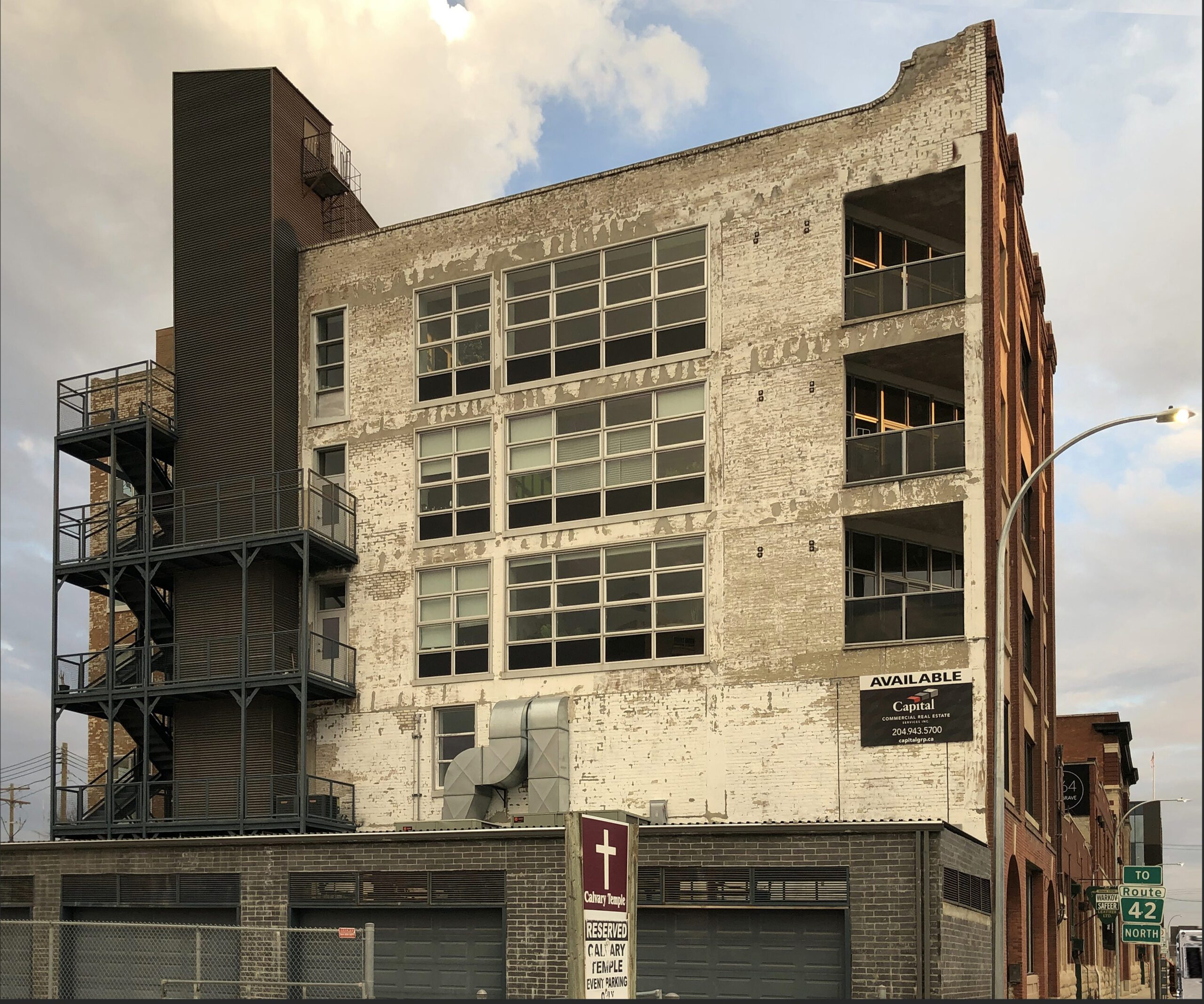 The building at 448 Hargrave Street in Winnipeg—home to Olesia Records—became the site of a visual epilogue. Its outer brick walls already bore the passage of time: chipped paint, weathered textures, accidental markings. Rather than conceal the distress, the concept embraced it—treating the building as both canvas and artifact, layering new meaning over old surface.