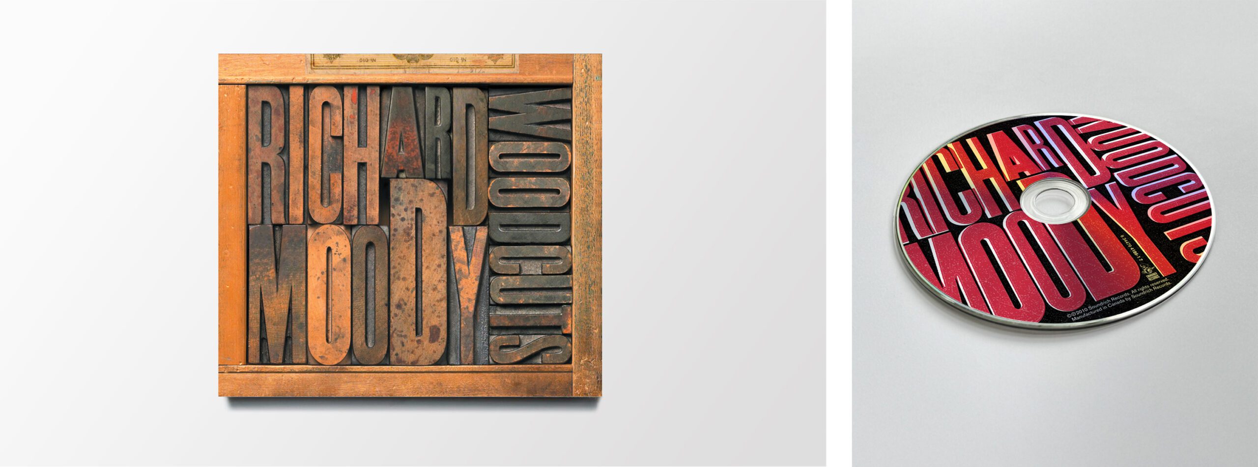 We kept the concept simple. Richard’s name and the album title were photographed inside the type drawer itself—nestled into the compartments like artifacts. On the back, the song titles were set in matching fonts, printed against the bottom of the drawer. Eclectic, bold, and honest. A direct reflection of the music within.