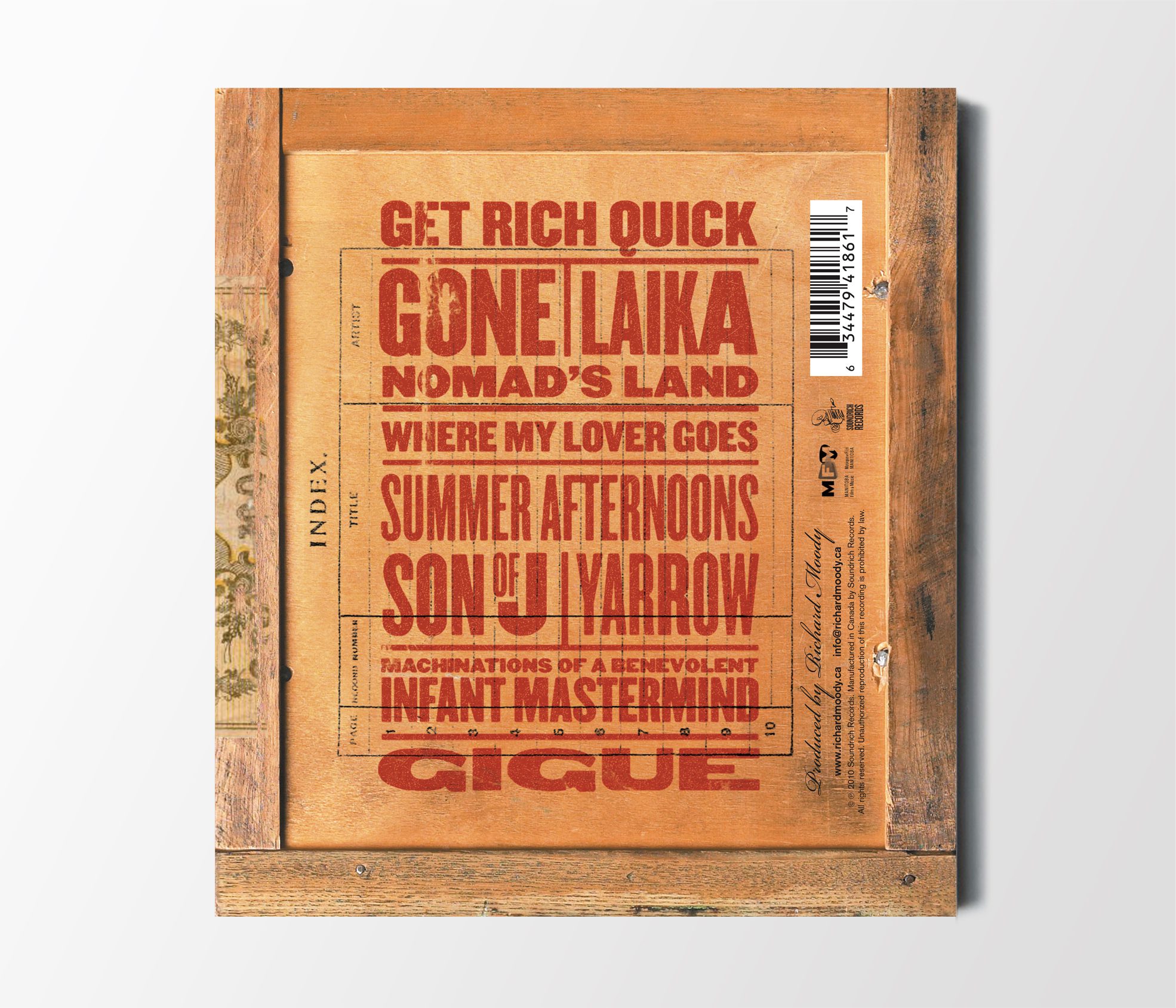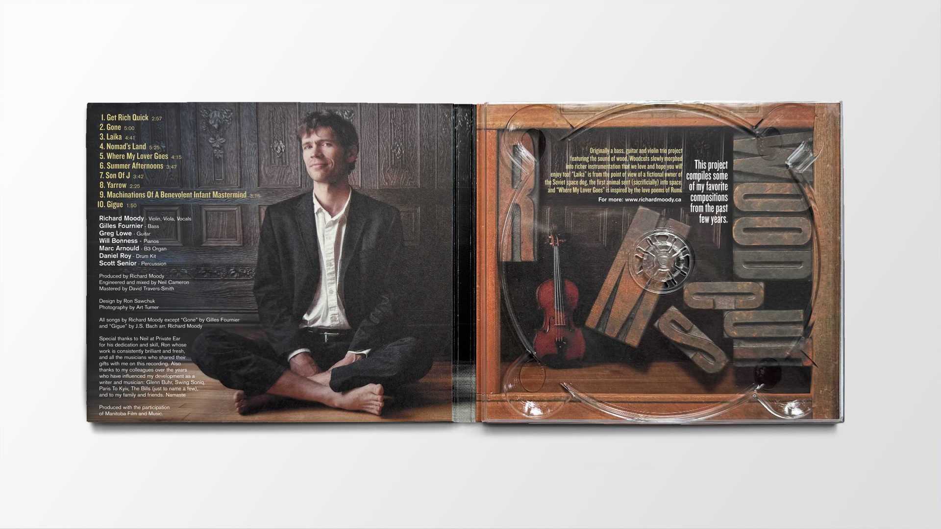 On the inside cover, Richard described the project this way: “Originally a bass, guitar and violin trio project featuring the sound of wood.” I loved the idea of a sound built from such warm, natural material. The music felt handcrafted and eclectic—like discovering a box of old curios in an attic. A mix of intimate, well-worn objects, each inviting closer inspection.