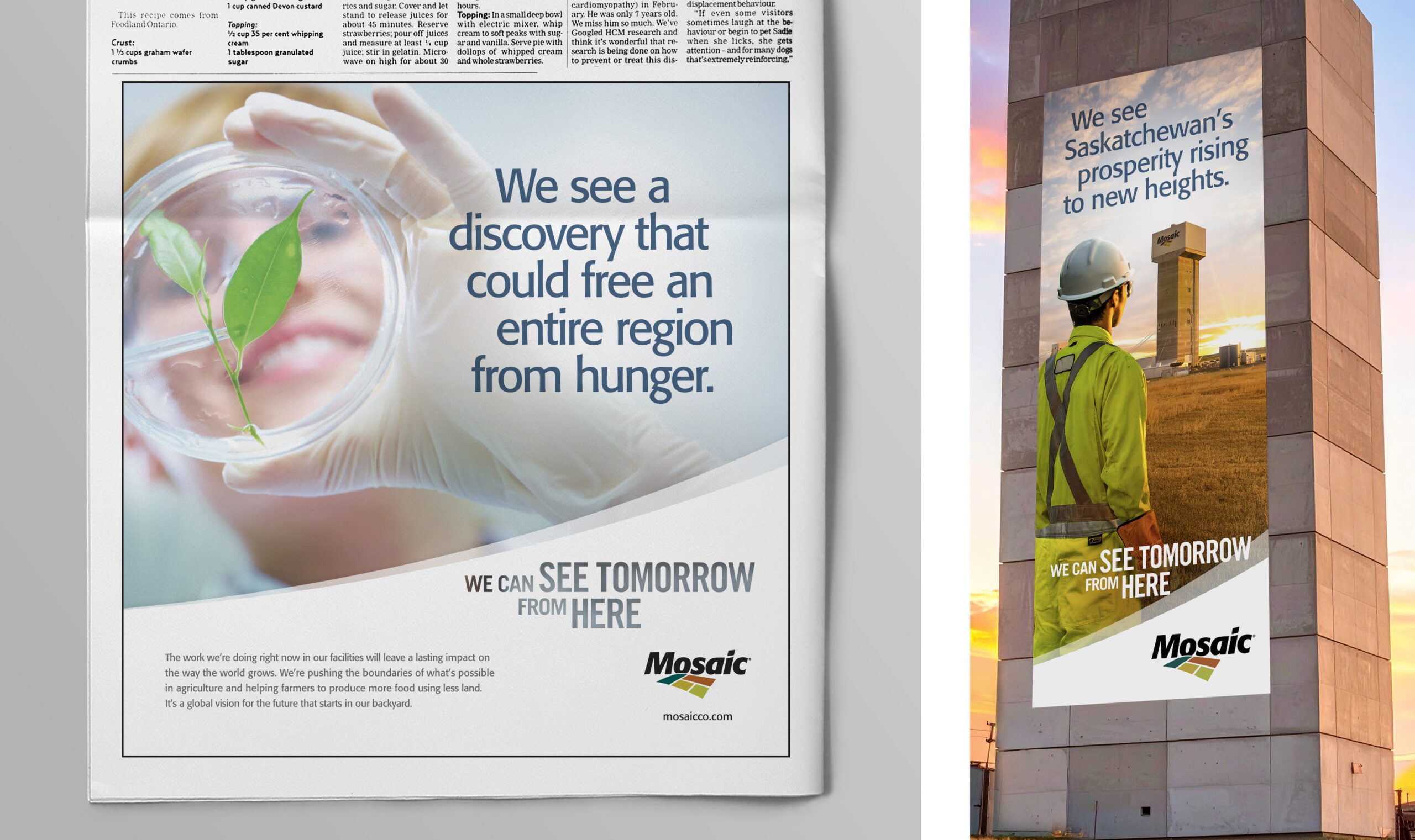 The third phase campaign was a refresh of “We Can See Tomorrow From Here”, reinforcing the company’s roots in Saskatchewan through warm storytelling featuring families with multiple generations working at Mosaic. The newly built Mosaic Stadium appeared in the campaign’s visuals and media placements—another quiet but powerful signal of the company’s long-term investment in the province and its communities.
