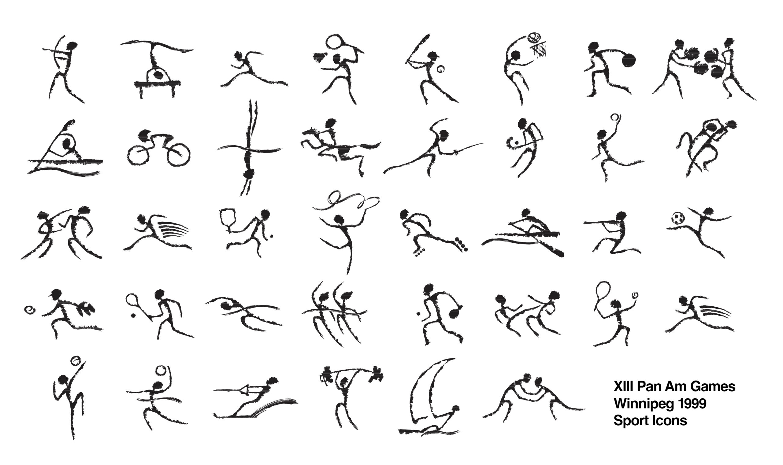 The visual identity for the 1999 Pan American Games in Winnipeg came together through a rare collaborative win. Kevin Braun and I—colleagues at Palmer Jarvis—were awarded different parts of the project through a national design competition. Kevin’s symbol became the official logo of the Games, while my submission was selected to represent the system of 30 sport icons applied across individual event materials—fleshing out the visual grammar of the brand.